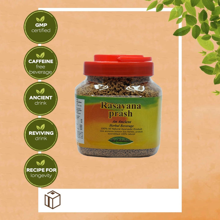 Rasayanaprash acts as a daily energy drink to relax the mind and refresh the body. It provides everyday enthusiasm for work. It helps students to concentrate in study and reduces sluggishness. It increases Sadhaka pitta and hence improves will power. Reduces irritability, and endows with calmness and serenity of mind.