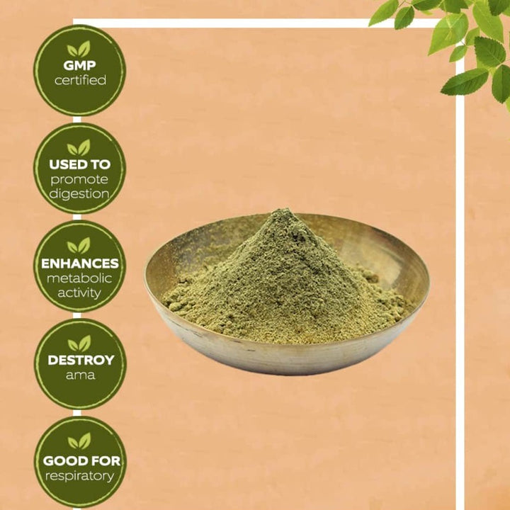 Trikatu is a mixture of three spices- shunthi, maricha, pippali in equal proportion. It is used to promote digestion, burn Ama( toxins), enhances the metabolic activity and absorption of the nutrients.